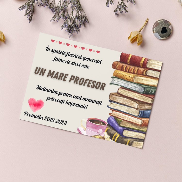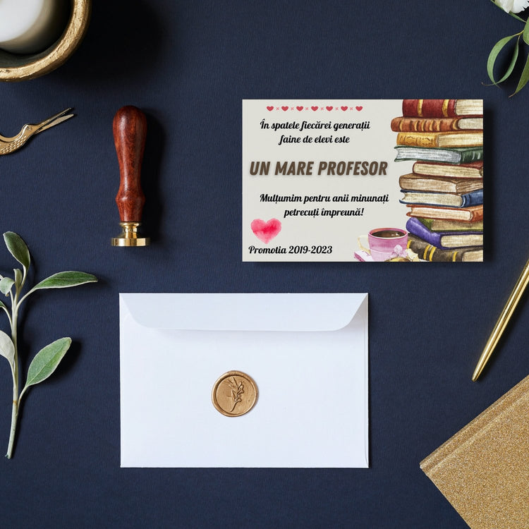 Персонализираната учителска карта е чудесен начин да покажете признателност за усилията и упоритата работа на вашите учители. Тази карта може да бъде персонализирана според вашите предпочитания и нужди, така че да можете да изпратите уникално и специално съобщение. Размер 13х18 см. Можете да изберете вариант с плик или без плик.