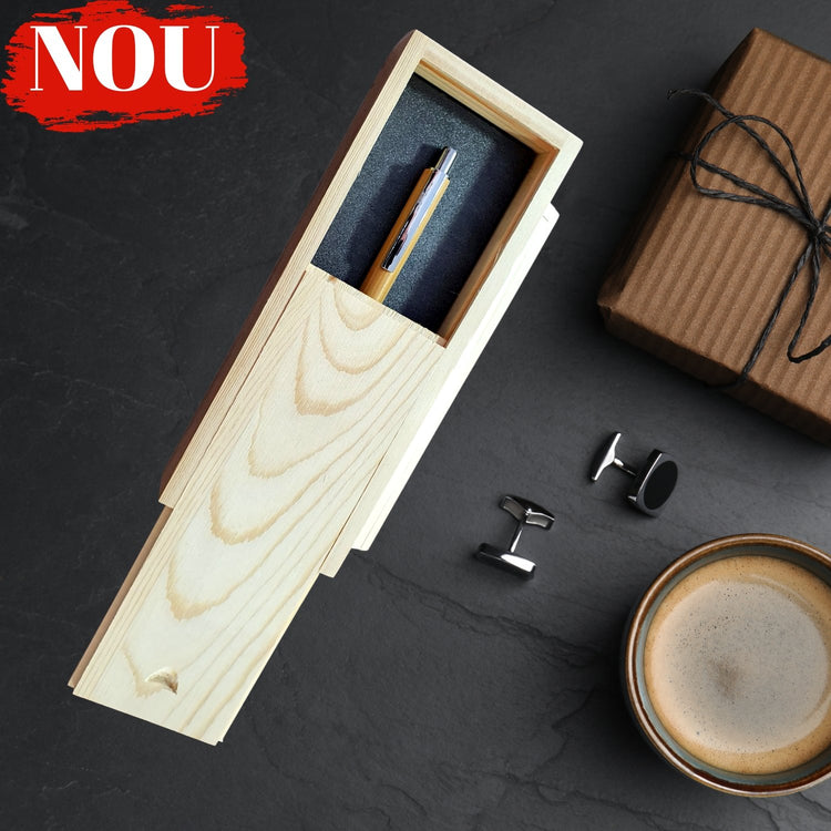 Влезте в света на персонализираните подаръци с бамбукова химикалка в персонализирана дървена кутия , специална идея за подарък , която върви независимо от повода, която може да бъде гравирана с послание, име или инициали . Писалката е изработена от бамбук и метал, син олово. Кутията е изработена от дърво и може да бъде персонализирана. Цената включва персонализиране. Тема за подарък: имен ден, имен ден, подарък за влюбени, ден на майката, ден на бащата, годишнина, Свети Валентин, Драгобете, 1 март, Коледа, Великден или всеки повод в живота ви. Бърза доставка в цяла Румъния!