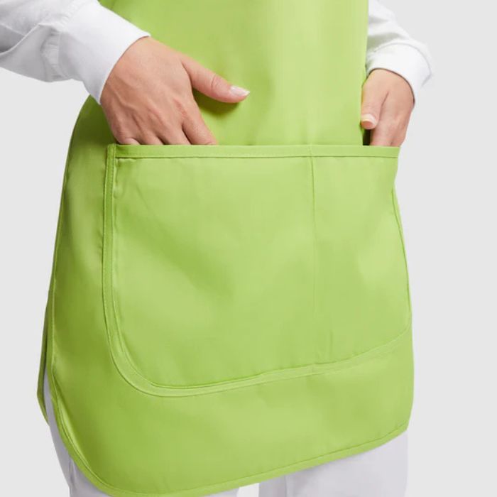 💡 Avantaj competitiv: datorită designului reversibil, poți alterna rapid aspectul șorțului, menținând mereu o imagine curată și profesională.